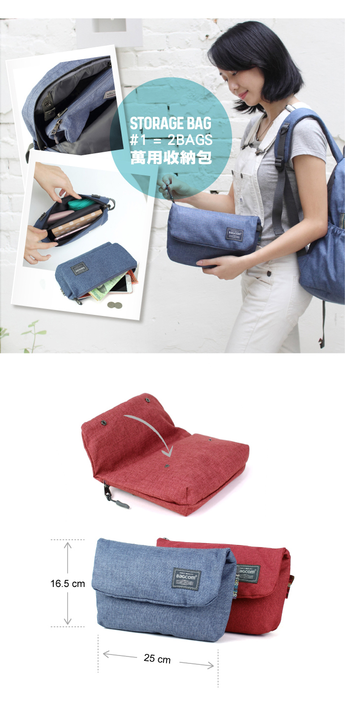 Doubles as an inner or outer storage pouch, and with an added shoulder strap, it transforms instantly into a crossbody bag.