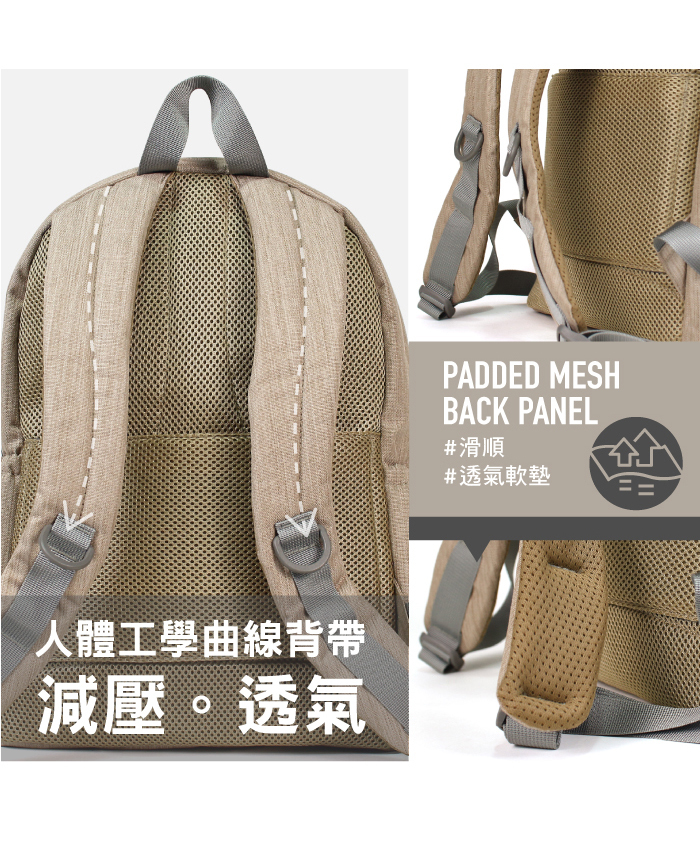 Shoulder strap stress points are reinforced with double stitching for enhanced strength.
