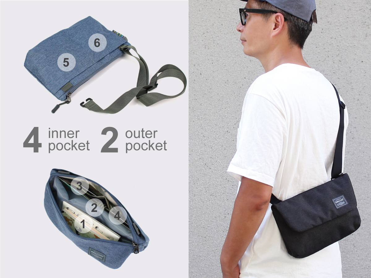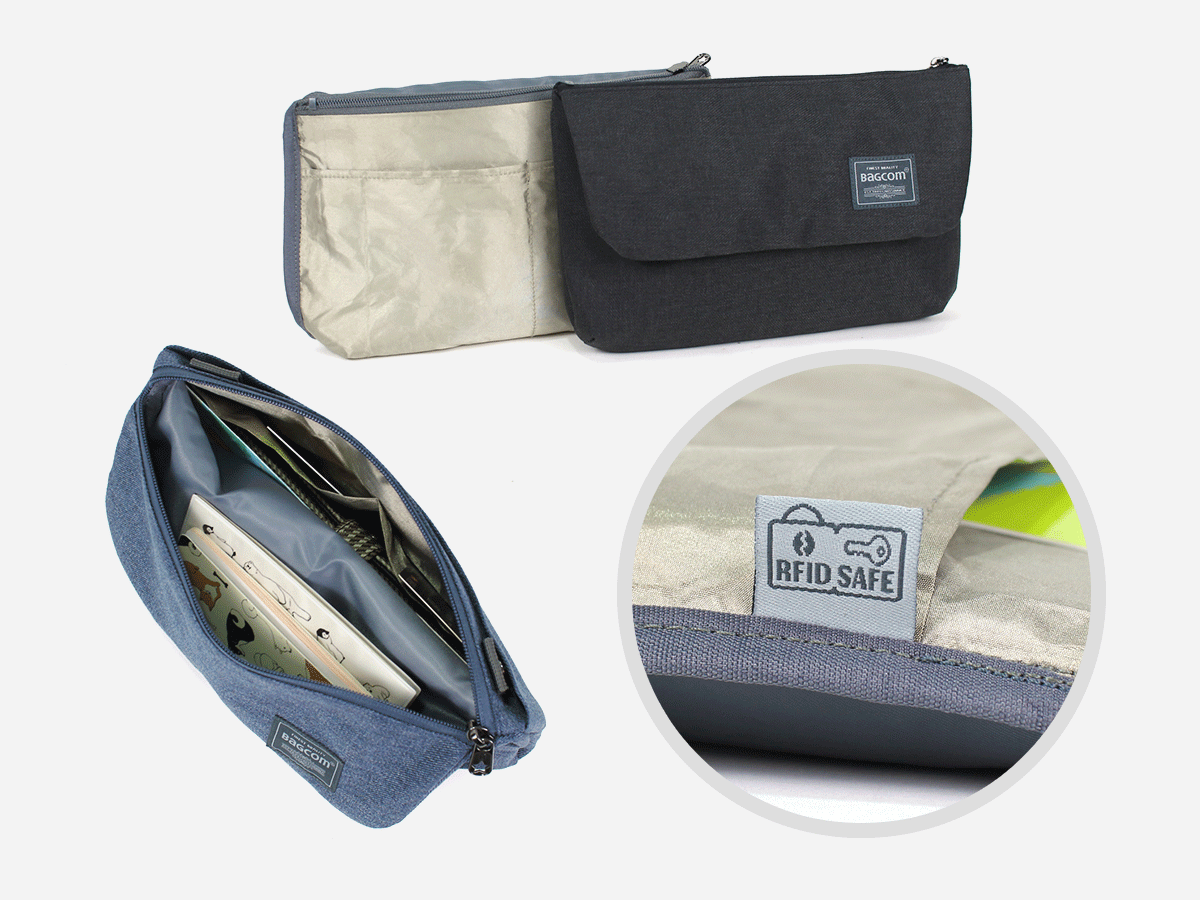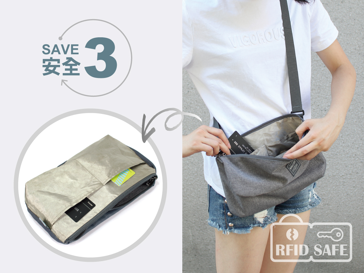 ▲ 斜肩包的內襯口袋在製作上採用RFID防盜刷材質,信用卡/悠遊卡個資不再擔心被盜取。