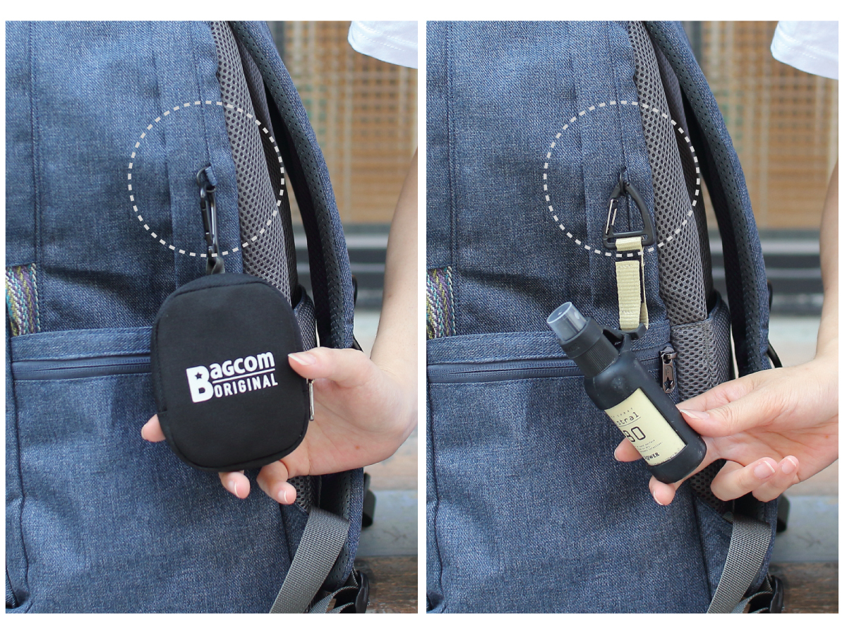 可獨立勾掛BAGCOM隨行包、酒精瓶、個性吊飾或加購【鬆緊彈力繩】使用。【鬆緊彈力繩】可穩固怕滑落的水壺、登山杖等等。
