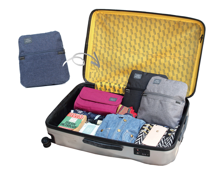 變身獨立斜肩包(長夾ok)。將它對摺變成雙層收納空間,不僅能當內袋也能作收納外袋。百變小包讓旅行更加俐落,不再手忙腳亂。