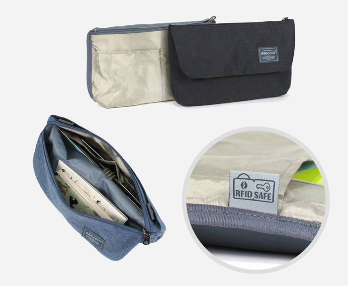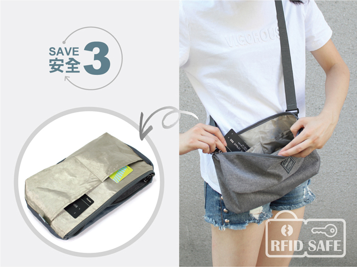 ▲ 斜肩包的內襯口袋在製作上採用RFID防盜刷材質,信用卡/悠遊卡個資不再擔心被盜取。