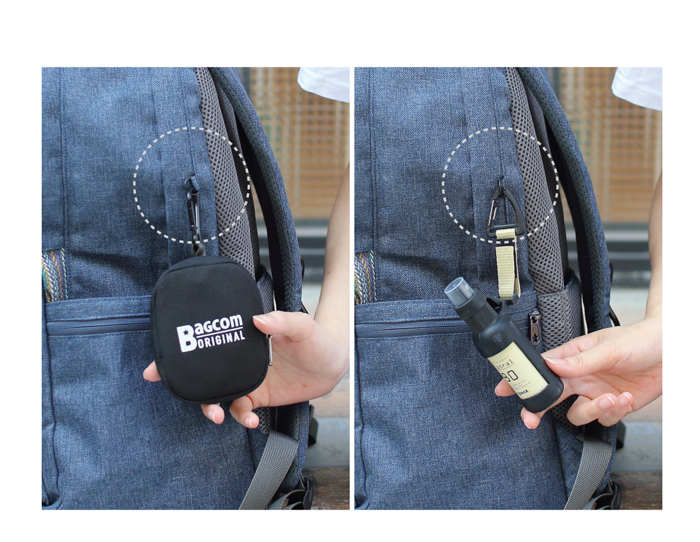 可獨立勾掛BAGCOM隨行包、酒精瓶、個性吊飾或加購【鬆緊彈力繩】使用。【鬆緊彈力繩】可穩固怕滑落的水壺、登山杖等等。