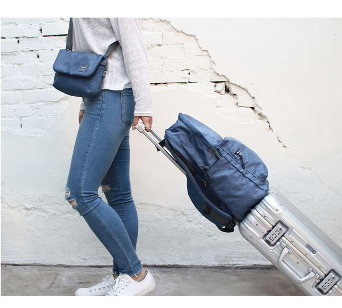可將整個背包收進拉鍊收納袋中,方便帶出國使用,不佔行李箱空間;家中收納也不佔位。(下圖為 29”行李箱)
