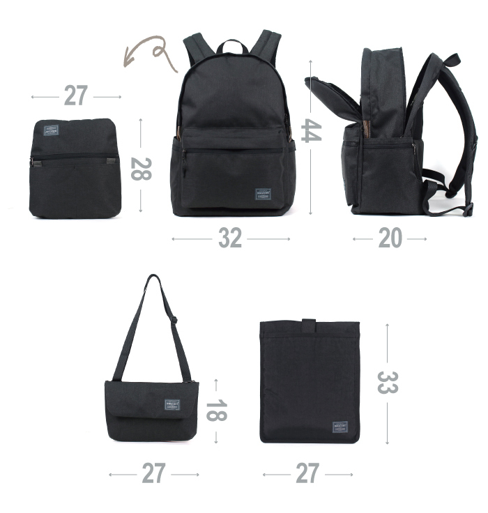 摺安包極盡所能將機能性做隱藏設計,並達到最輕量化的狀態,同時維持背包外型呈現簡單有質感的樣貌,讓男生女生皆適用。