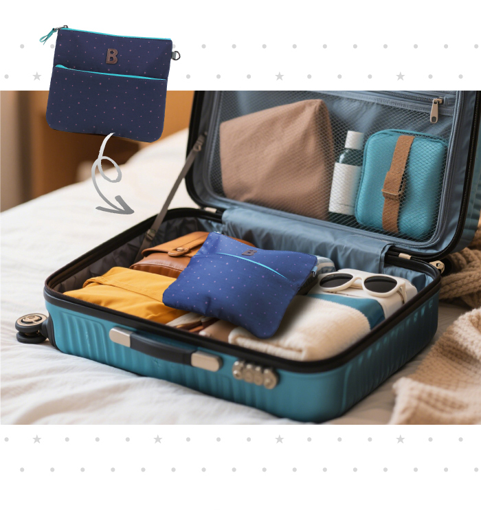 2、也可直接放置於包內下方收納小物