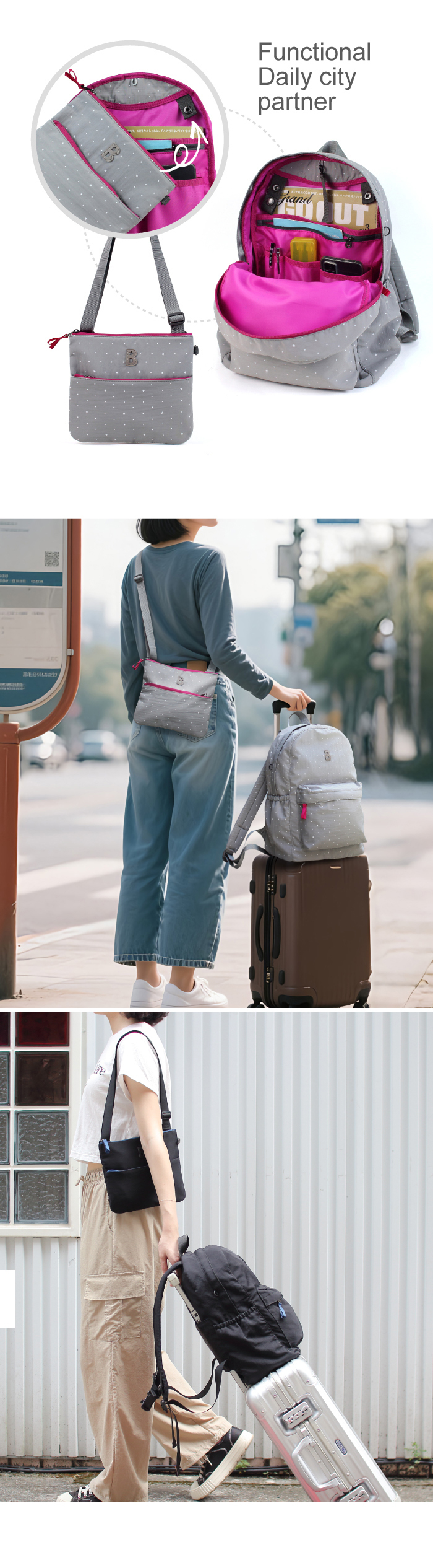可將整個背包收進拉鍊收納袋中,方便帶出國使用