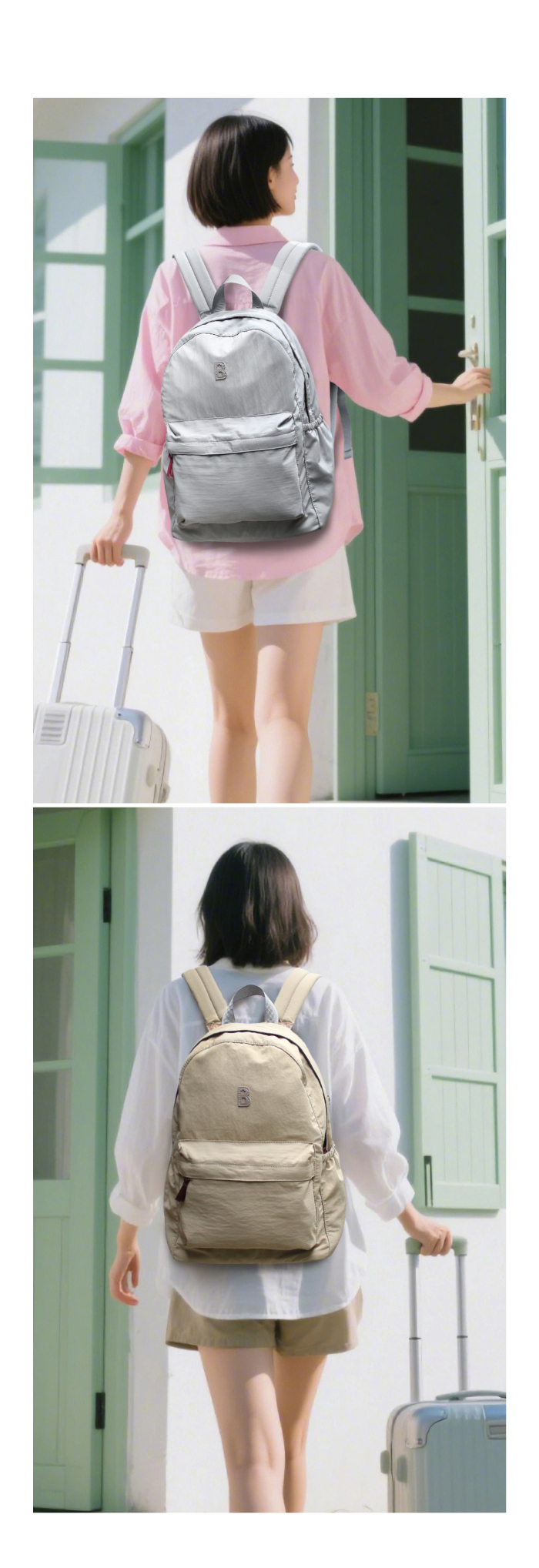 新布~1變2包。超輕柔感抗水收納後背包組-卡其