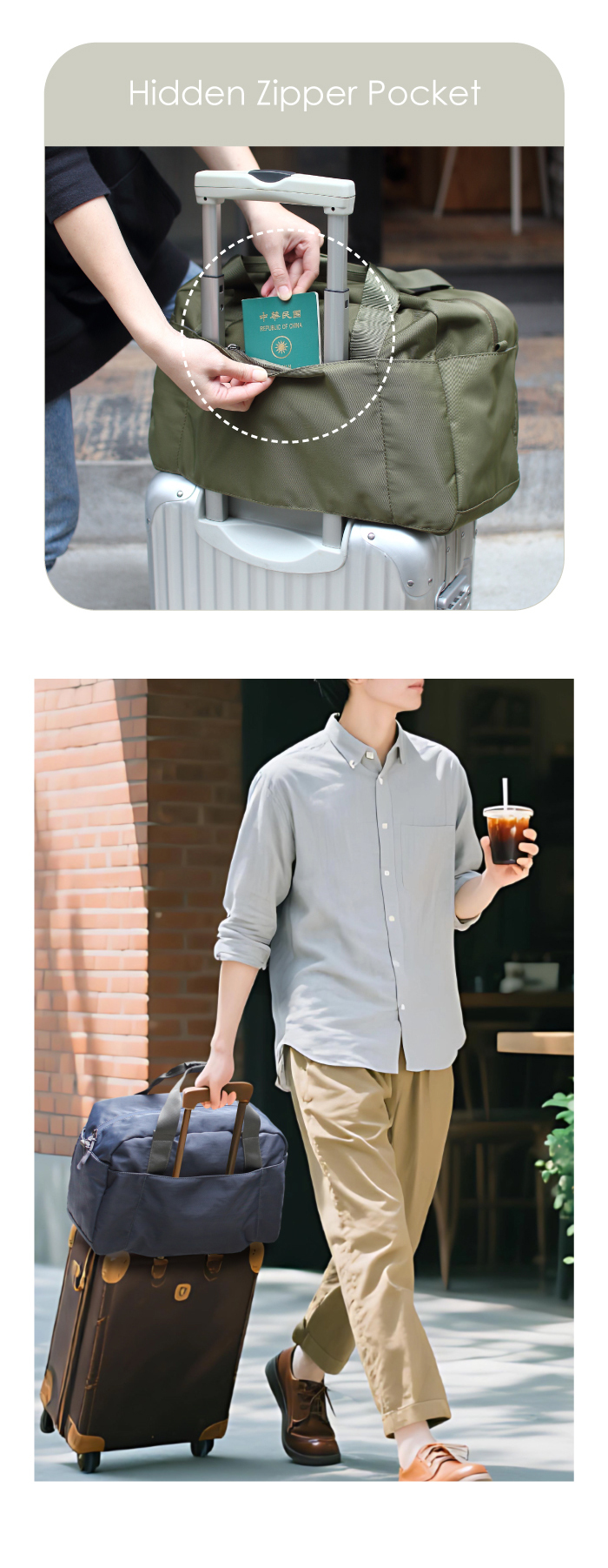 .隱藏拉鍊護照袋