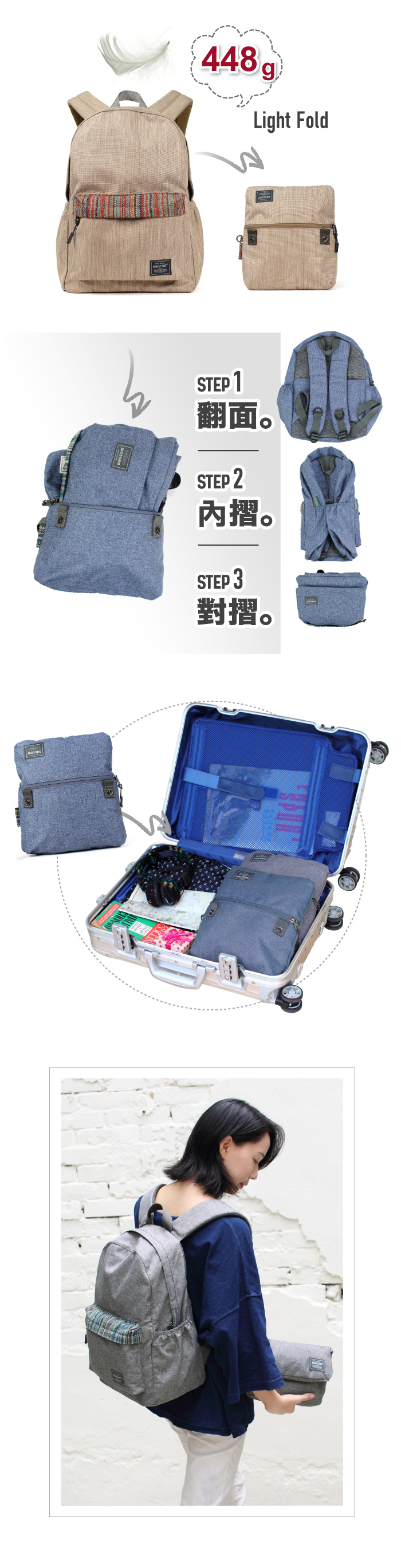 ✔可插行李拉桿+護照暗袋