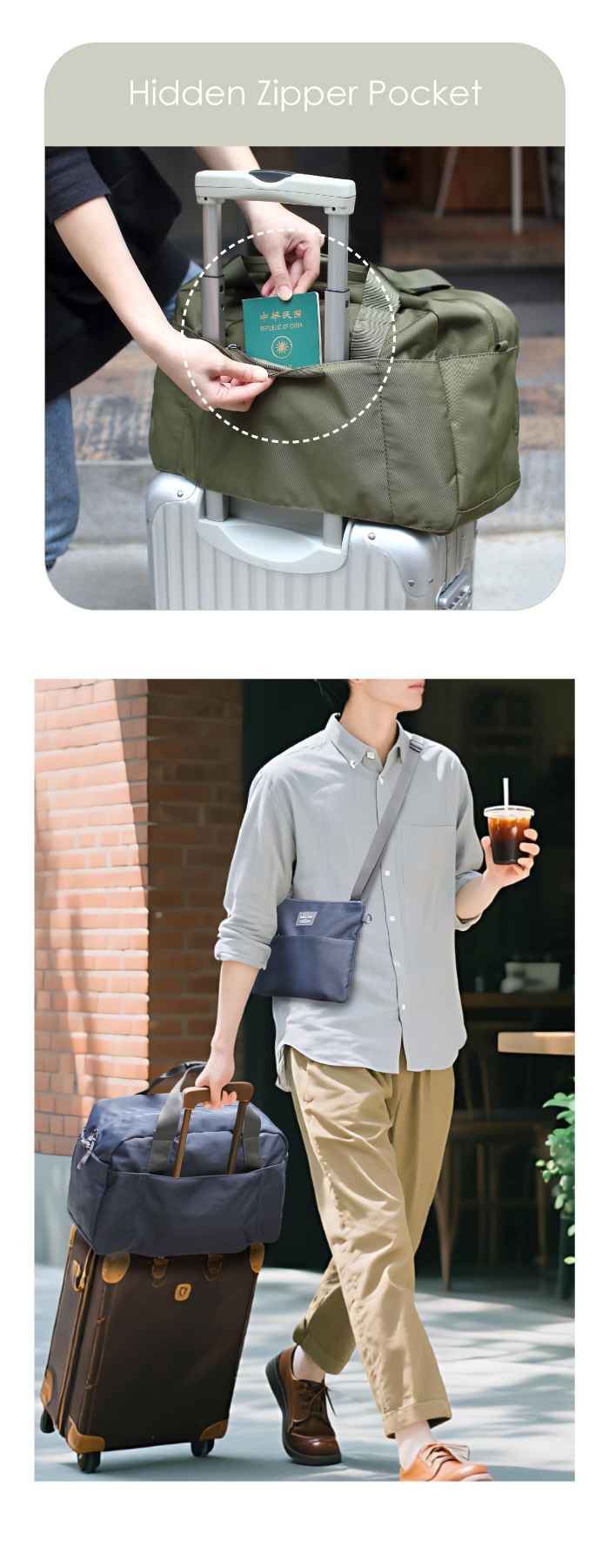 .隱藏拉鍊護照袋