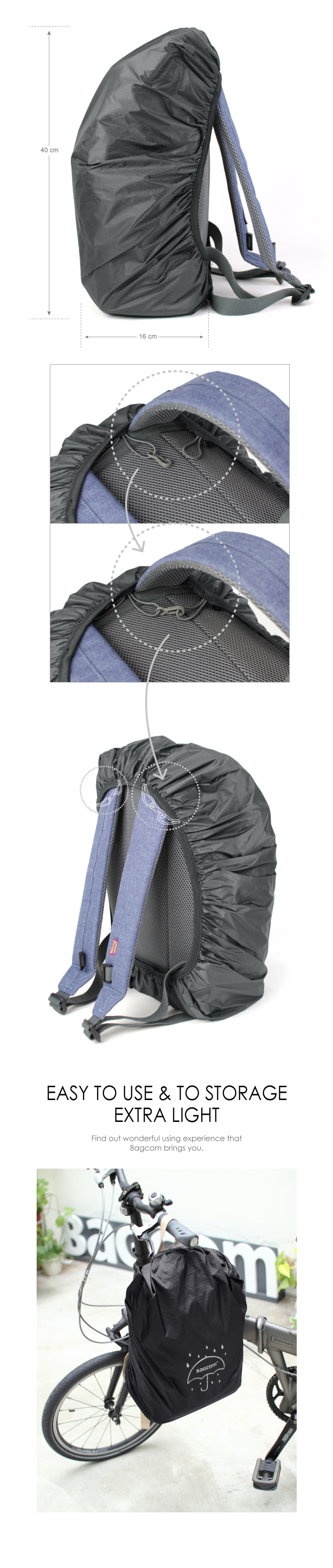 ‧彈性扣繩設計,35L以內的背包OK