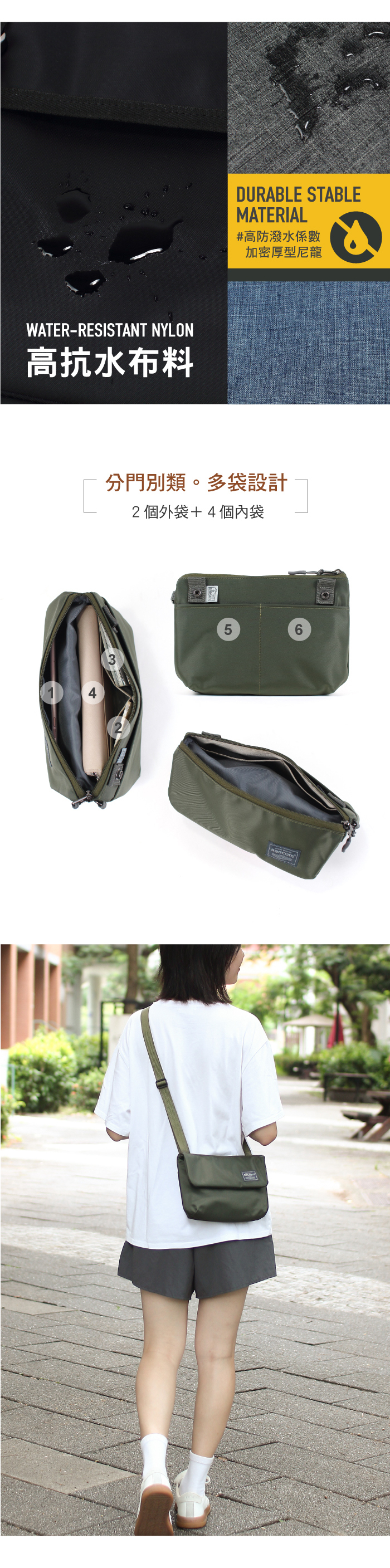 ●防個資被盜RFID SAFE加倍安心●4內袋+2外袋●雙層設計●3 Ways 手拿/肩背/斜背
